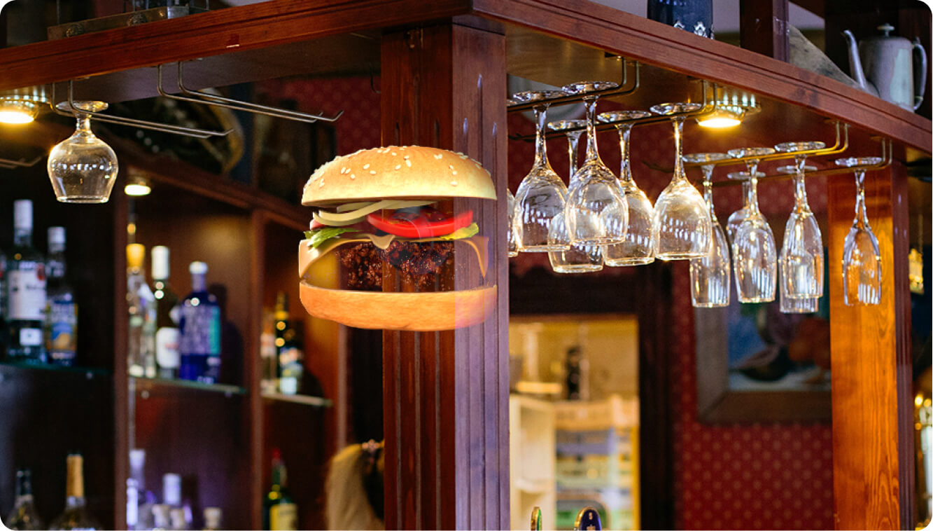 Make a strong first impression and convert passers-by into visitors by placing holographic devices in a restaurant window.